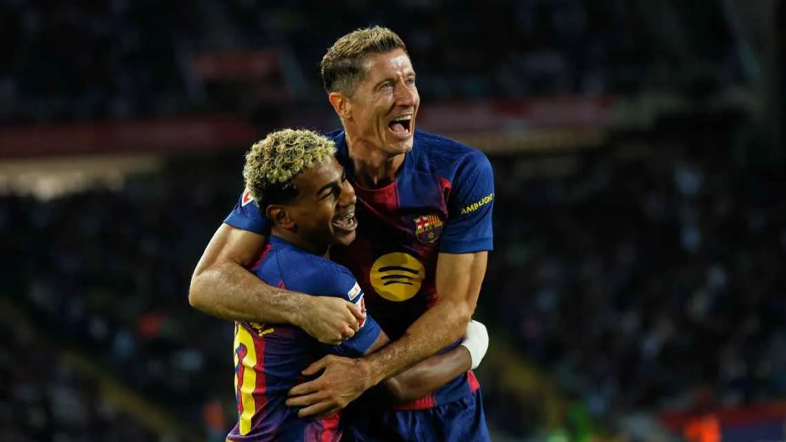 En el segundo tiempo, Hansi Flick recurrió a su mayor talento: Lamine Yamal. La joya española, que antes del inicio había mostrado al público el Trofeo Kopa, ingresó en el minuto 58 y apenas un minuto después desbordó por la derecha y puso una asistencia magistral a Lewandowski, que marcó el 2-1.