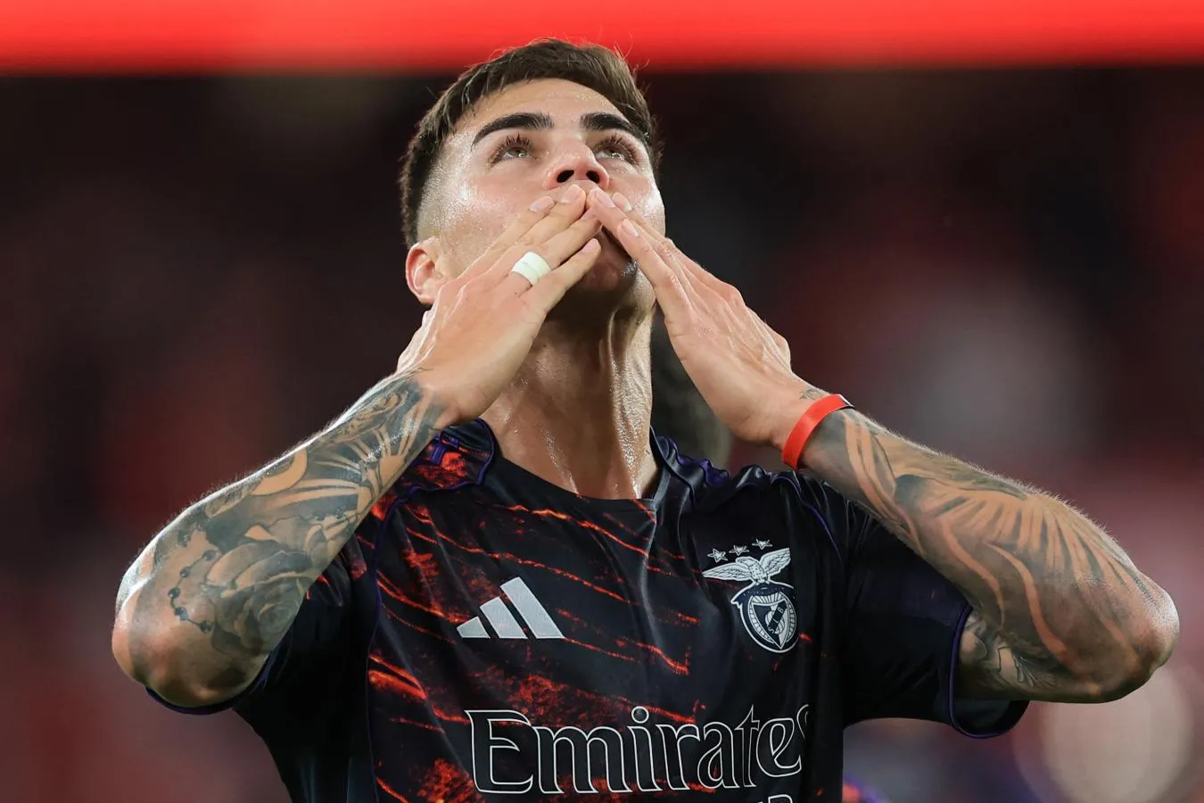 ENZO BARRENECHEA convirtió su primer gol en la Liga de Portugal con la camiseta de Benfica en la victoria por 3-0 ante AVS.